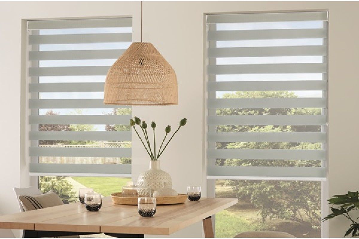 They alternate sheer and solid fabric bands, allowing homeowners to switch between filtered light and privacy without fully raising the shade.